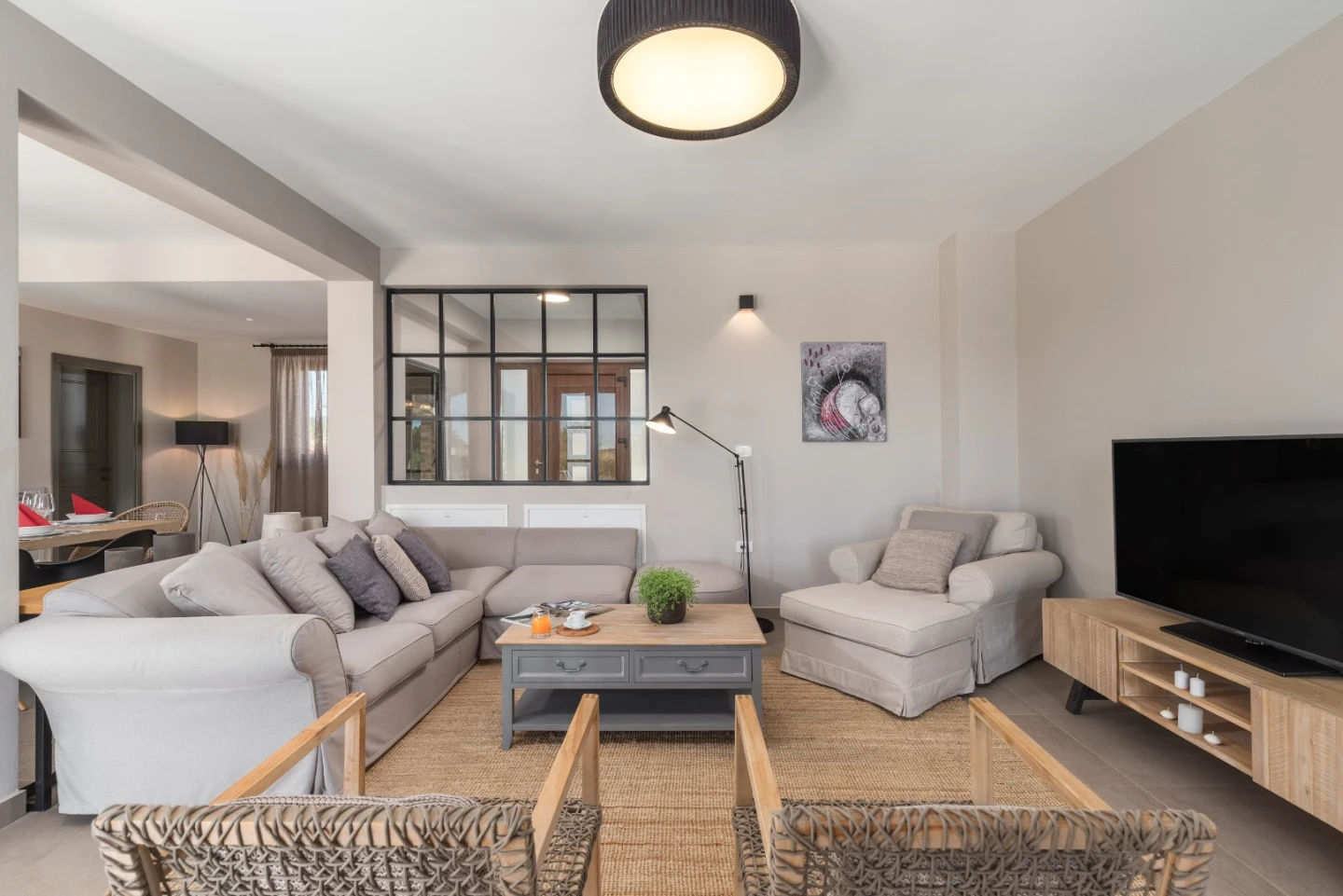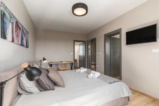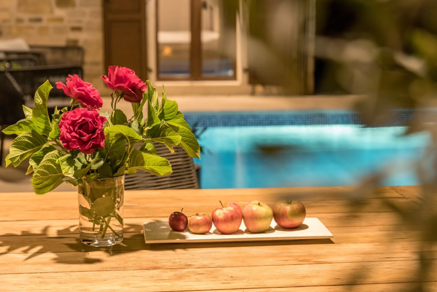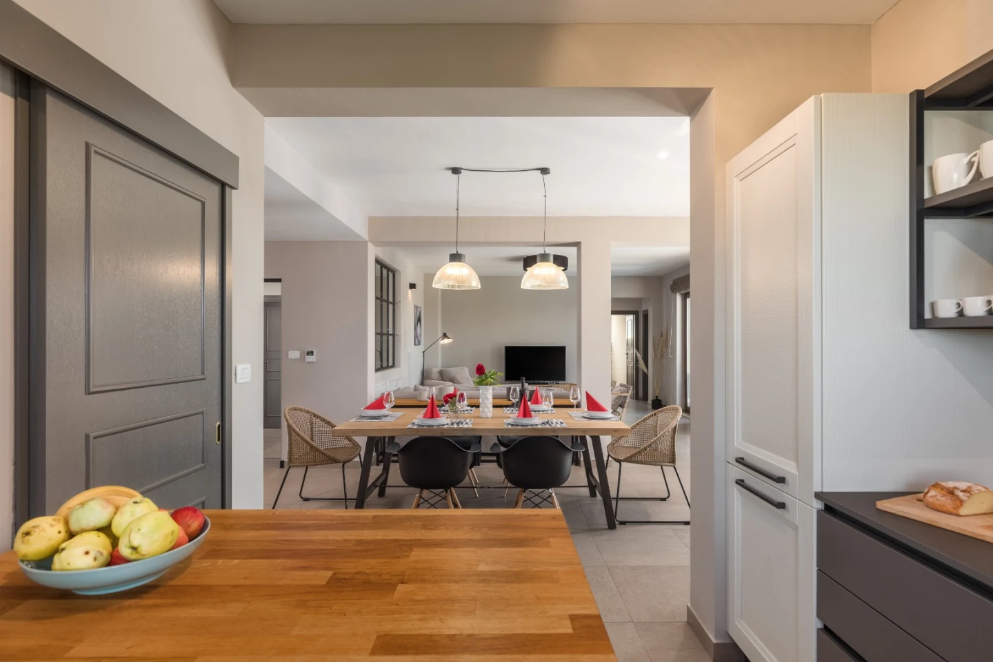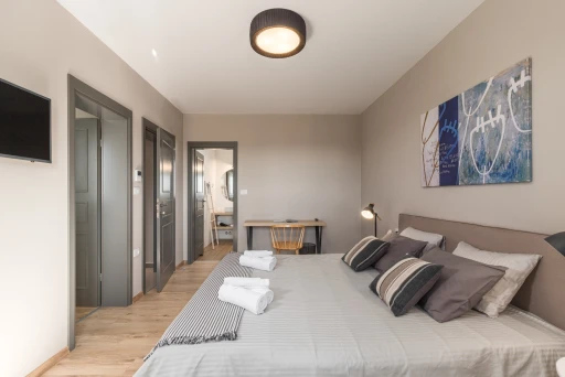 Built in 2018, Brih II is a new and modern villa which offers you all the amenities for a luxurious stay. This holiday home is completely furnished and equipped with all the standard facilities. On the ground floor you will find 2 bedrooms, one with 2 single beds, and one with a double bed. The rooms also have satellite TV, air-conditioning, and the ground floor bathroom has a washing machine. There is also a separate toilet. The kitchen, dining area and living room are also on the ground floor, fully equipped so you don't need to worry about anything more than the groceries. There is a dishwasher, electric kettle, toaster, cooker, and first and foremost – a coffee machine. There are two double bedrooms on the first floor, along with en-suite bathrooms and a wonderful balcony to enjoy the vineyards around the villa.