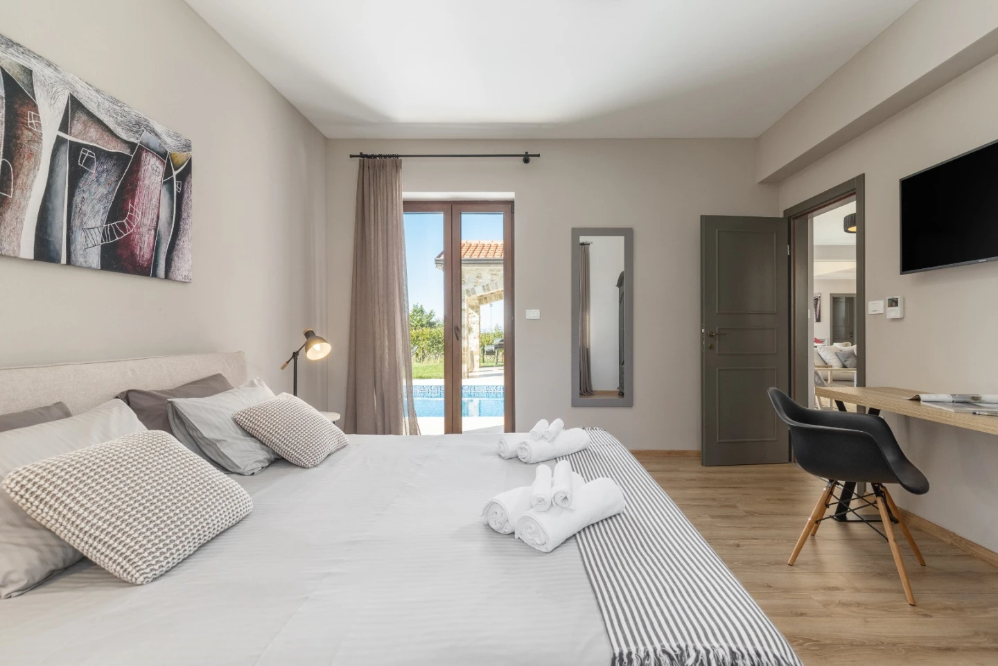 The villa is located in the outskirts of Pilati village near Karojba, about 24 km from Poreč. You will certainly enjoy waking up to a clear sky and beautiful landscape.